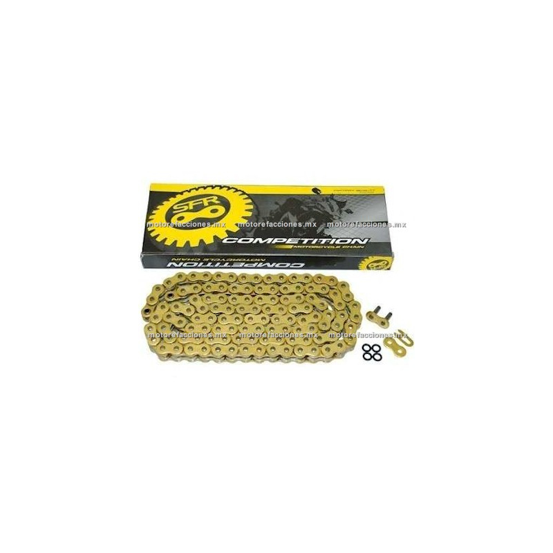Cadena de Tracción 520HOx130L DORADA con O-RING para Motocicleta - - - Tipo: REFORZADA con O-RING y DORADA - - - Marca: SFR - - - Mas utilizada en Vento V-Thunder 250 - Italika DM150 (amarilla con blanco y roja c/ negro) y otros modelos compatibles - - -