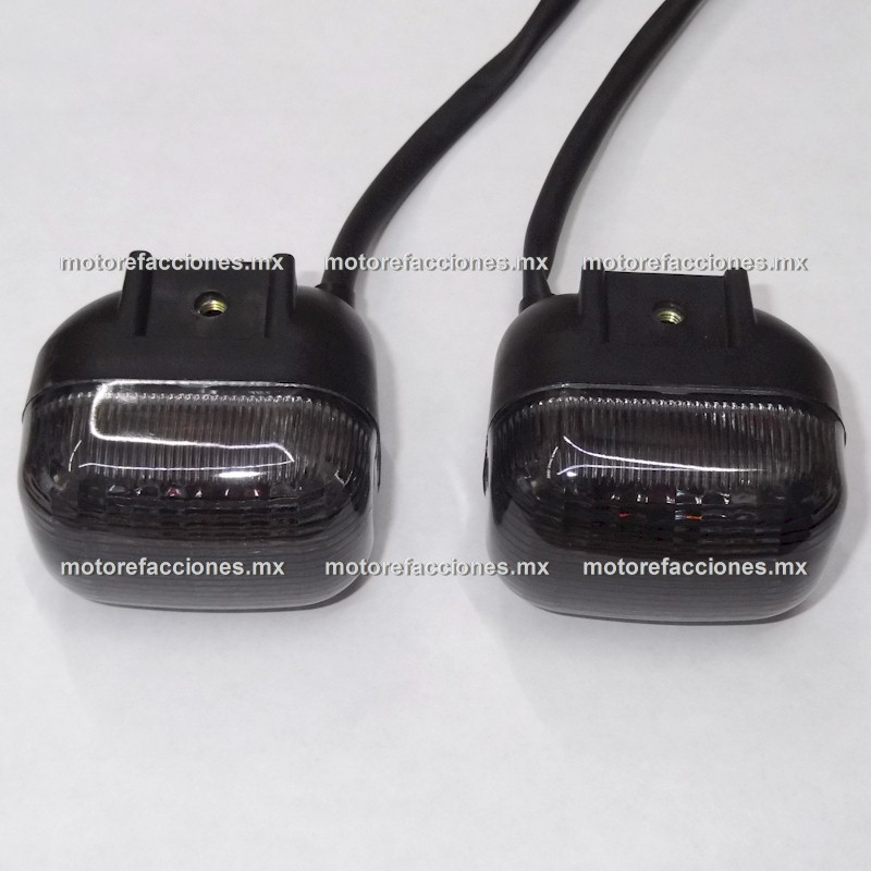 Juego (2 pzas) de Luces Direccionales ECONOMICAS Frontales Rectangulares con mica color Humo - Italika WS150 Sport / WS175 Sport - Yamaha BWS100 / BWS125 - Vento Terra Z y modelos compatibles - - - INCLUYE: Focos color Ambar y Arnés de Cables - - - FORMA: Rectangular - - -